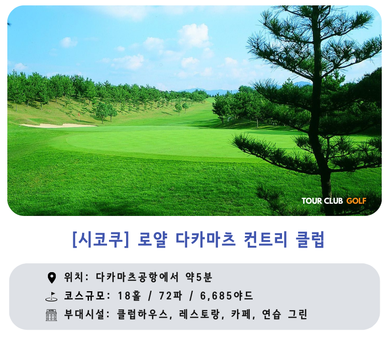 - 로얄CC : 하얀 모래와 푸른 소나무로 둘러싸인 코스로 최적의 그린 관리로 자부심 가득한 골프장입니다.