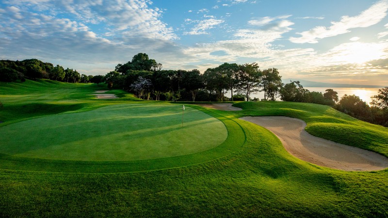 웅대한 자연 속에 훌륭하게 녹아든 "파사쥬 코토미 아일랜드 골프 클럽". 3곳의 바다 넘어 홀을 비롯해 전략성을 충분히 고려해