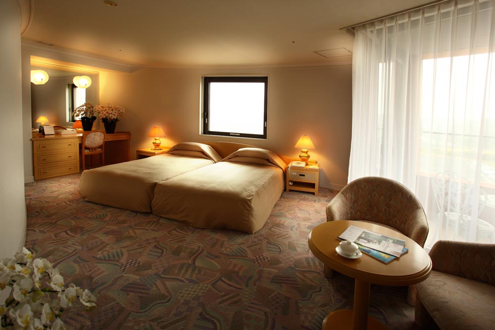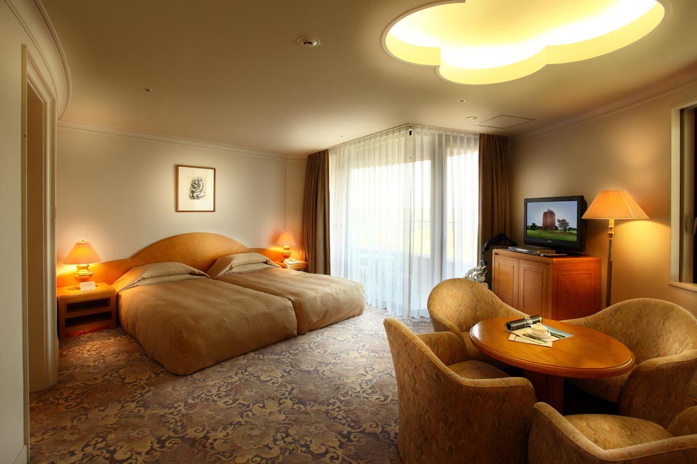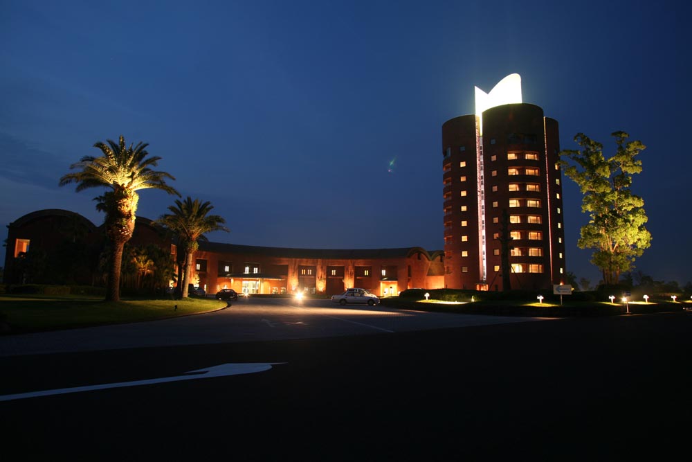 일본이 자랑하는 세계적인 건축가 쿠로가와 키쇼의 설계로 이루어진 참신한 모양과 약동하는 네잎클로로바 모양의 건물은 인도 사암으로 덮여져 있으며 모양은 중세유럽의 성을 방불케합니다. 모든 방은 광대한 코스를 전망할 수 있으며 이는 여유있는 미야자키 아이와 리조트만의 개방감과 여유있는 공간으로 외부자연과의 연속성을 느끼게 해 줍니다. 또한 신선한 재료로 준비되는 일본 전통의 가이세키 요리를 맛볼 수 있어 머무는 동안 새로운 기대감과 기쁨으로 다가갑니다.