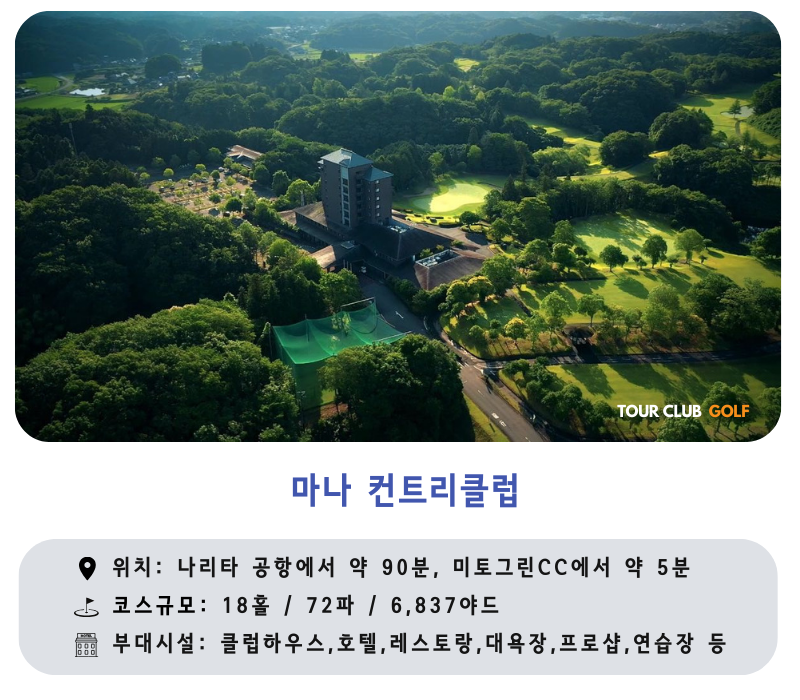 - 마나CC : 이바라키의 깊은 숲속에 위치한 짧지만 공격적으로 플레이 해야 하는 인상적인 골프클럽 입니다.