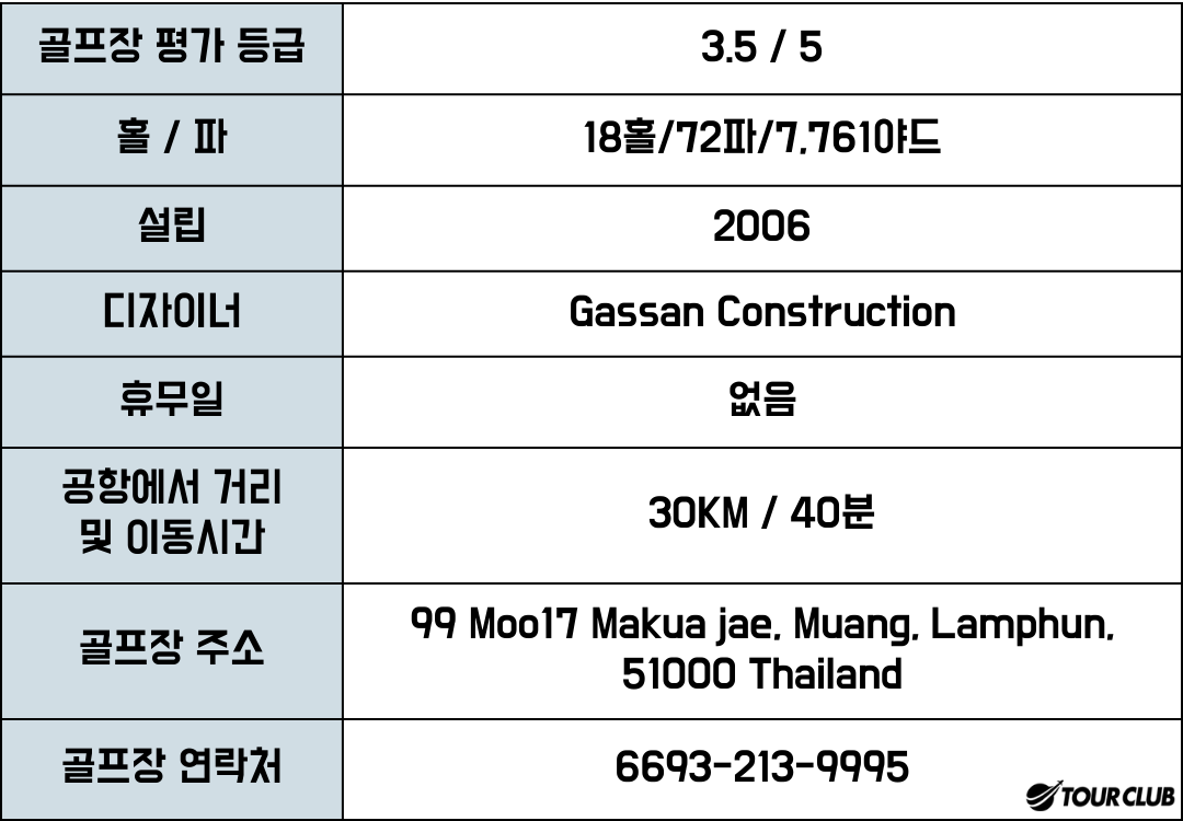 태국에서 가장 긴 7,072야드 코스로 치앙마이의 큰 호수를 따라 18개의 홀이 설계되었습니다.