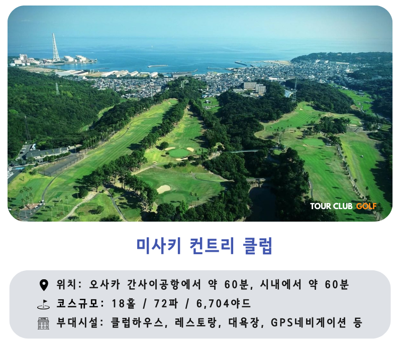 - 키시가와CC : 넓고 긴 페어웨이와 탁트인 시야로 와카야마현 최고의 호쾌한 코스로 불리우며, 비기너 부터 상급자 까지 모두 즐겁게 라운드 할 수 있습니다.
