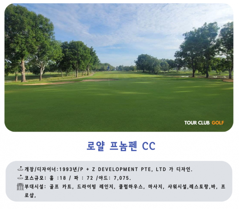 프놈펜(Pnom Penh)에서 차량으로 약 30분 정도 떨어진 곳에 위치한 골프 클럽입니다.