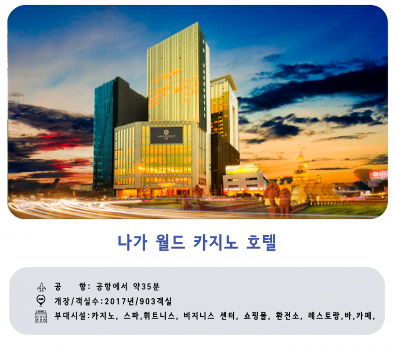 캄보디아의 수도 프페놈에 위치한 나가월드 2 카지노 호텔은 캄보디아에서 가장 큰 5개 호텔 중 하나입니다.