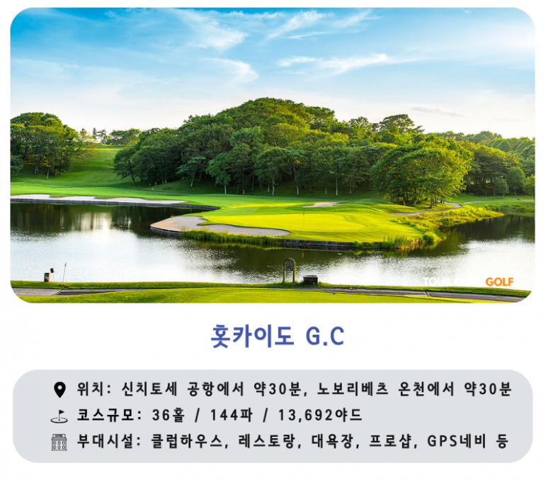 일본 골프 코스 디자인계의 거장 카토 슌스케의 골프장 설계 철학이 녹아 있는 홋카이도 골프클럽은 1991년에 개장 하였습니다. 웅대한 타루마에 산을 바라보며 치열한 두뇌와 기술을 요구하는 전략적인 코스로서 JPGA, JLPGA 여러 대회를 개최한 명문 골프 클럽입니다. 대체적으로 평탄하면서 워터 해저드가 곳곳에 포진하고 있어 아름다운 경관과 함께 안정적인 플레이를 즐길 수 있는 아메리칸 타입의 이글코스 18홀과 거칠고 크고 작은 마운트가 도사리고 있어 마치 스코틀랜드 링크스를 연상케 하는 라이온코스 18홀로 구성되어서 라운드의 재미를 더합니다.
