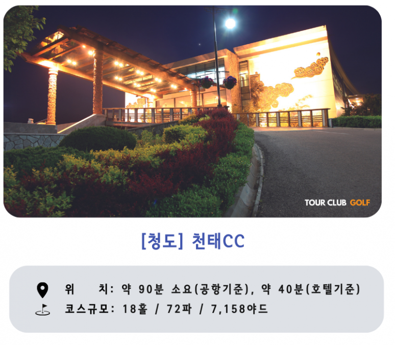 - 천태CC : 9홀,18홀 추가시 86,000원/인