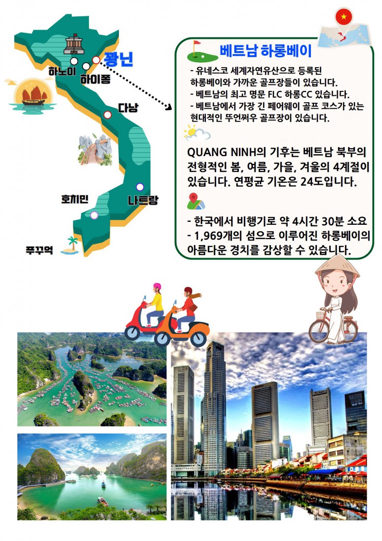 | 하이퐁 | FLC 하롱베이 CC 18 홀 라운딩 라운딩후 호텔의 부대시설 이용 및 자유시간 석식 후 공항으로 이동 |