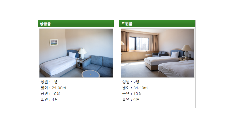 시설 종류: 부지내 호텔 싱글(14실) 트윈(14실) 3 ~4인실(4실)
