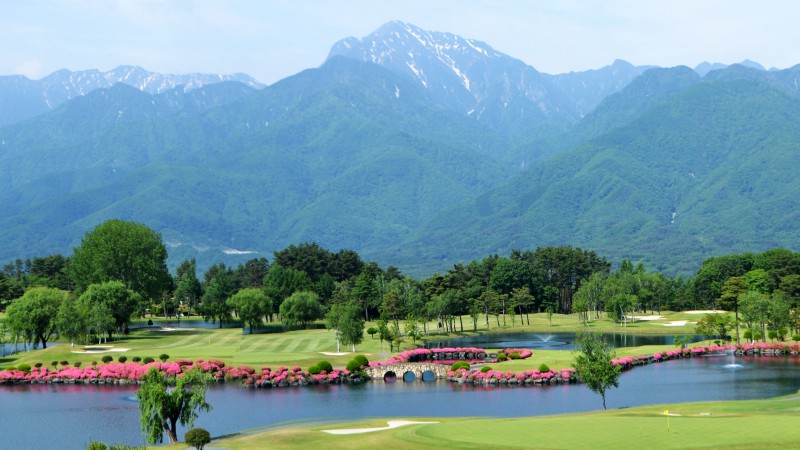 구릉 코스. 하치가다케의 웅봉을 바라보는 거의 평평한 지형으로, 크고 작은 7개의 연못이 전략 포인트에