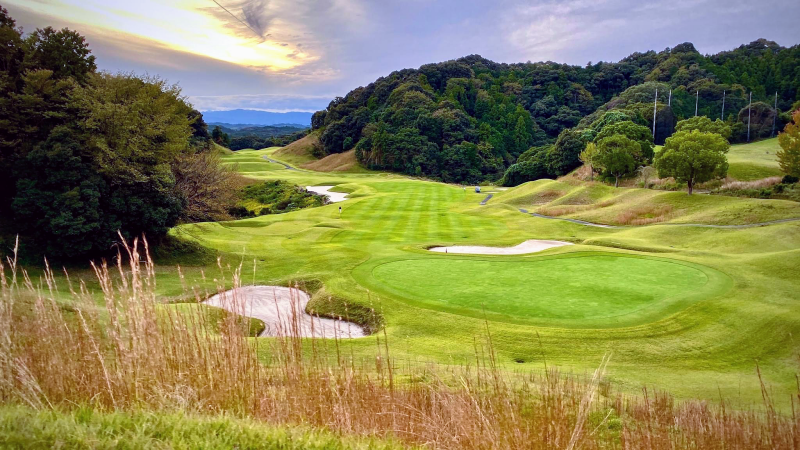 구릉 코스. 광대한 부지 안에 여유를 가지고 조성되어 있으며, 각 홀이 각각 독립적이고 특징적인 디자인으로 되어 있다.