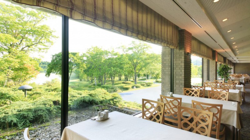 웅대한 아사마산을 바라보는 절호의 로케이션과 아름다운 앙쥬레이션이 리조트의 개방감을 주는데,