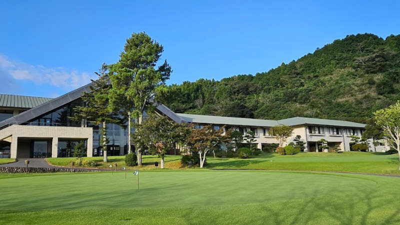 후지산을 바라 보는 것을 전제로 설계된 코스 클럽 하우스는 시즈오카 현 특유의 특별한 경치입니다.