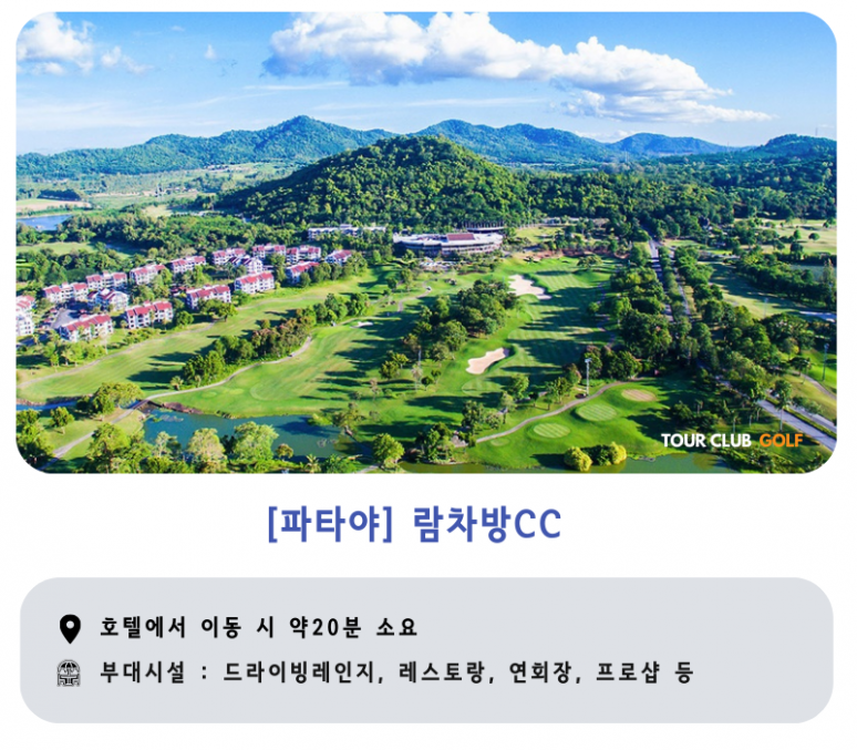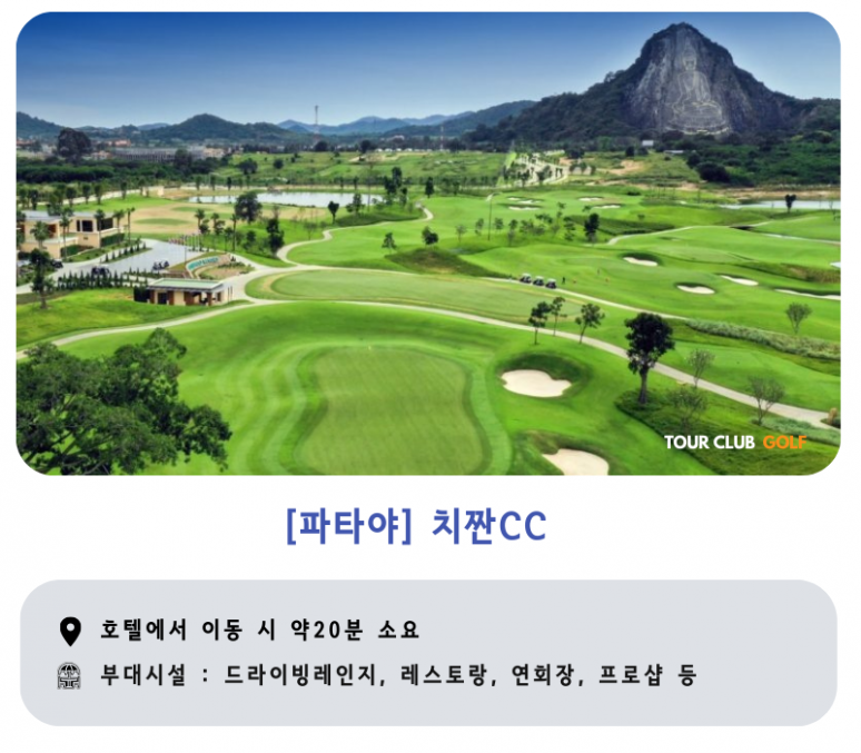 | 파타야 | 전일 | 조식 후 골프장으로 이동 (약 20~30분) ●시암CC,치짠CC,람차방CC 또는 동급 중 1곳 18홀 라운드 라운드 후 호텔로 이동 및 휴식 |