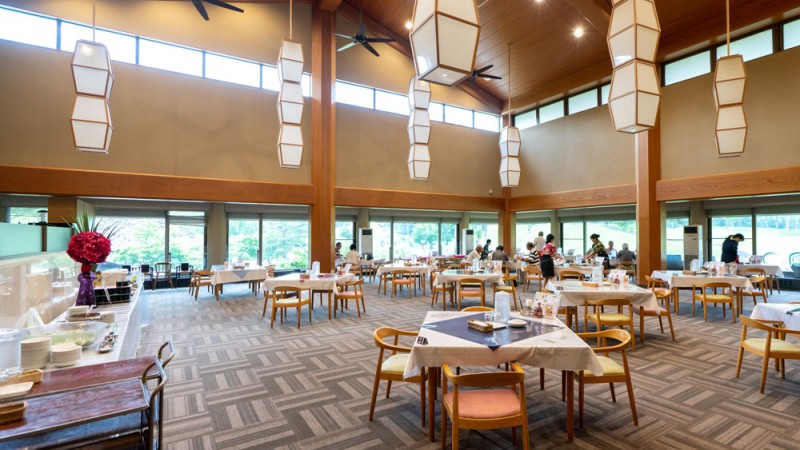 레스토랑에서는 타테시나야마의 샘물에서 자란 사쿠코시히카리, 계절을 물들이는 당지 식재료를 사용한 메뉴를 라인업