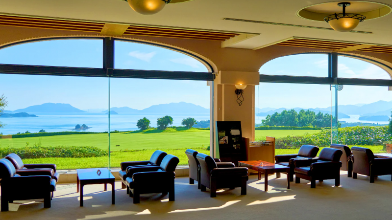 세토 내해에 접한 구릉지에 탄생한 굴지의 리조트 코스. 2021년부터는 골프장 내에서 캠프를 즐길 수 있는 플랜도 개시!