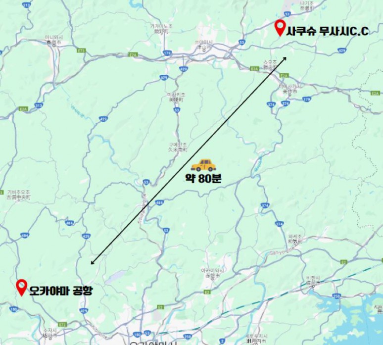 | 대한항공 | KE771편 인천공항 08:45 출발 ~ 오카야마 공항 10:15 도착 |