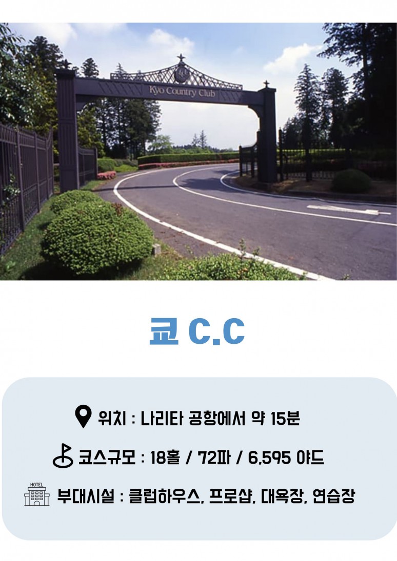 쿄C.C는 최대한 자연환경을 살려 설계된 골프 코스로서 그린 주변에 연못이 배치되어 있으며,
