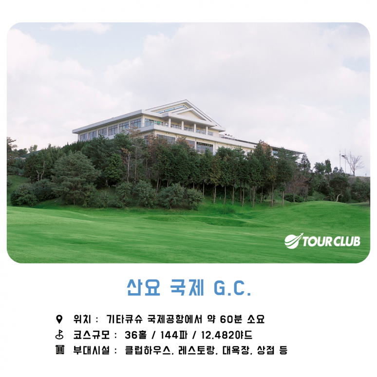 | 호텔조식 후 골프장 이동[약30분소요] 산요국제G.C - 27H [東Course 또는 西Course] 플레이 후 골프샾, 돈키호테, 드럭스토어 자유쇼핑 호텔이동 석식 및 휴식 |