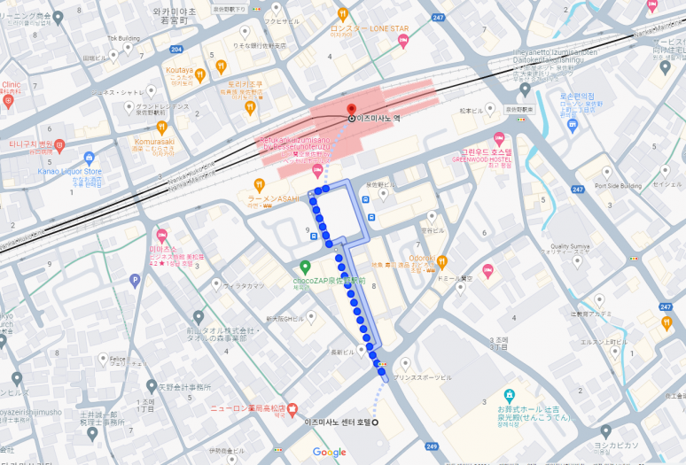 [ 이즈미사노 센터호텔 주변 MAP ] - 이즈미사노 역까지 도보 3분 거리