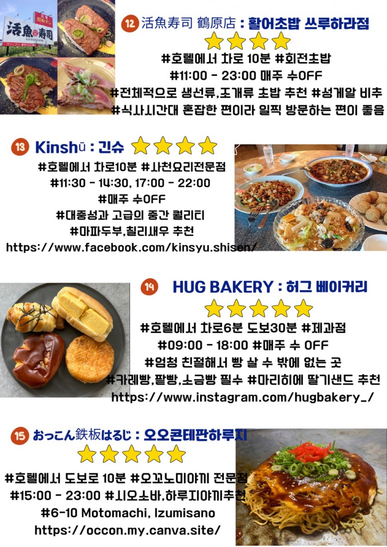 ● 이즈미사노 센터호텔 또는 동급 (2인 1실), 호텔 조식