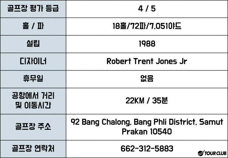 부대시설도 잘갖춰져있으며 비록 코스들이 난해 하지만 특별히 페어웨이를 연결하는 워터해저드들이 있는 파5들의 4번 홀은 아주 즐길만한 곳 입니다.