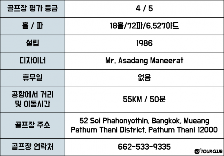 이 코스는 1986년에 개설 되어 태국에서 오랜 역사를 가진 사설 코스