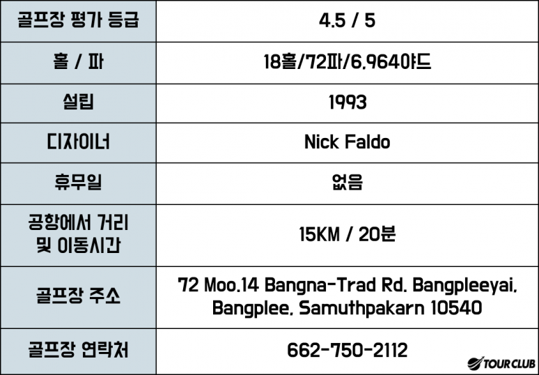 1993년에 닉 팔도가 디자인한 태국의 가장 훌륭한 코스중 하나 입니다.