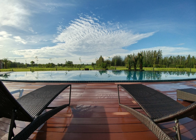 골프장에는 푸른 하늘과 푸른 코트가 어우러진 아름다운 나무와 식물들이 파노라마처럼 펼쳐져 있습니다. 이곳에서는 자연의 손길을 느끼실 수 있습니다.