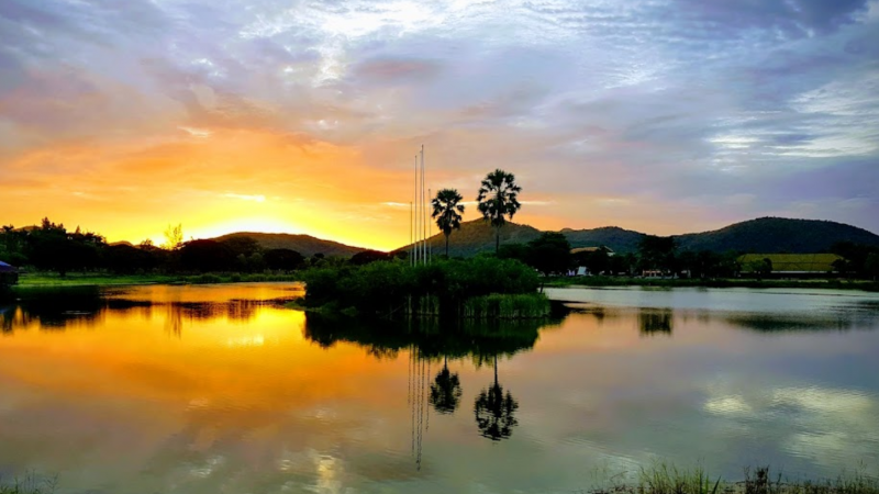 칸차나부리 시내에서는 약 40KM 떨어져 있고 칸차나부리의 유명한 관광지들뿐만 아니라 산림 등으로 인하여 자연적 아름다움으로 둘러싸인 곳입니다.또한 해발 250M 이상이 산자락에 위치하여 시원하고 11월부터 아침 18도, 낮 기온 28도 전후의 기온을 보이며 시기적으로 건기 시즌이라 한국의 초가을 날씨처럼 선선하므로 얇은 긴팔 옷을 준비하시는 것이 좋습니다.