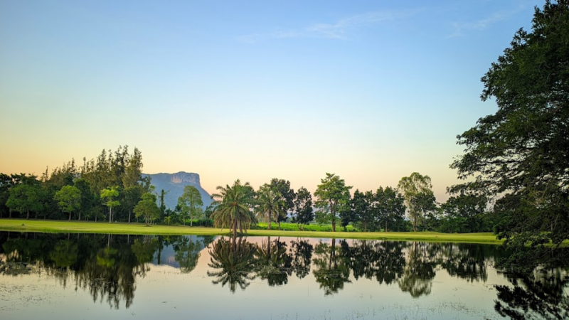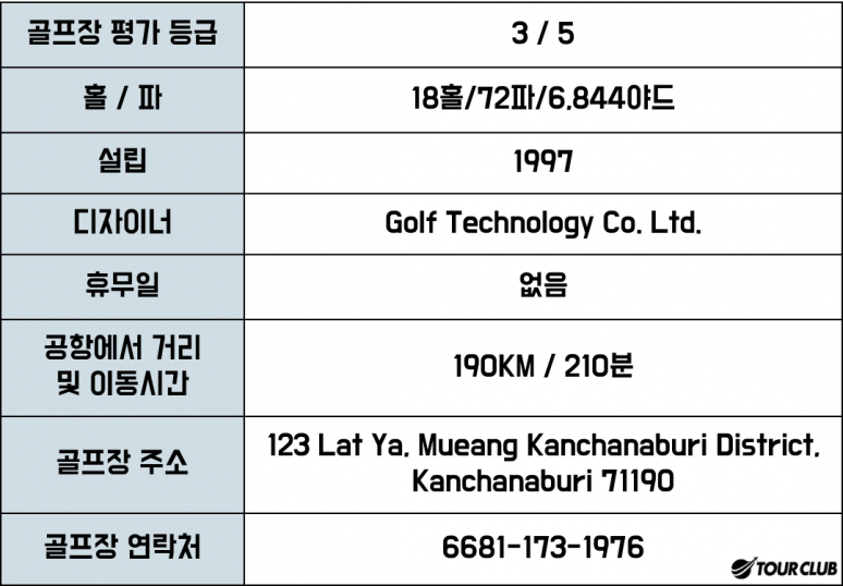 대부분의 홀은 평평한 페어웨이와 함께 나무가 늘어서 있습니다. 그린에는 기복이 거의 없어 좋은 그린 읽기보다 직선 퍼팅이 더 중요합니다. 한 가지 주의할 점은 12월부터 2월까지는 미다를 피하는 것입니다. 코스와 리조트가 한국의 대규모 골프 그룹으로 매우 붐비거나 꽉 찰 수 있기 때문입니다.