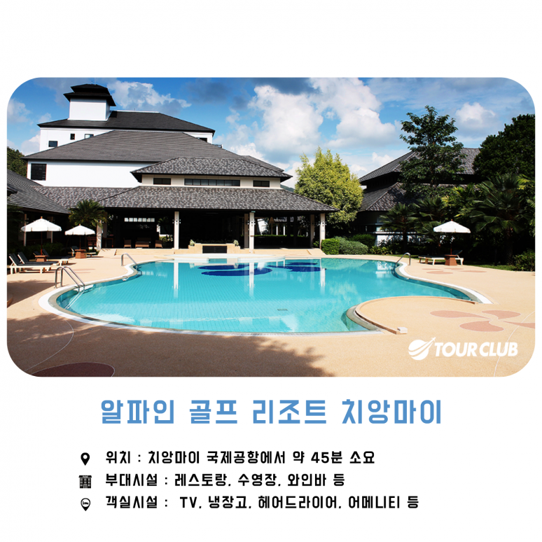 알파인 골프 리조트 – 치앙마이는 3개의 코스로 나뉘어 있는 27홀 국제 선수권 골프 코스에서 골퍼들을 초청하여 도전을 경험하게 하려고 합니다: '더 베스트 리뉴얼 어워드 2007'을 수상한 세계적인 디자이너이자 태국 골프장 최고 디자이너인 미스터 피라폰 나나트라가 디자인한 코스 A-3,830야드, 코스 B-3,712야드, 코스 C-3,702야드는 어렵고 쉬운 홀이 완벽하게 섞여 도전과 재미를 보장합니다. 페어웨이 그린상태가 늘 최고의 상태를 유지하며 보편적인 태국의 평지 코스와는 다르게 아기자기한 코스를 즐길 수 있습니다. 그린은 넓고 빨라서, 코스 공략 시 생각하고 공략해야만 좋은 스코어를 기대할 수 있어 게임의 재미를 느낄 수 있는 골프장입니다.