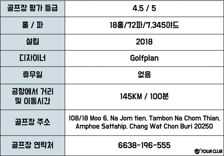 2018년 11월 오픈한 치찬 골프 리조트는 파타야의 고급 골프 클럽을 표방한 18홀 챔피언쉽 코스를 가진 골프장 입니다.