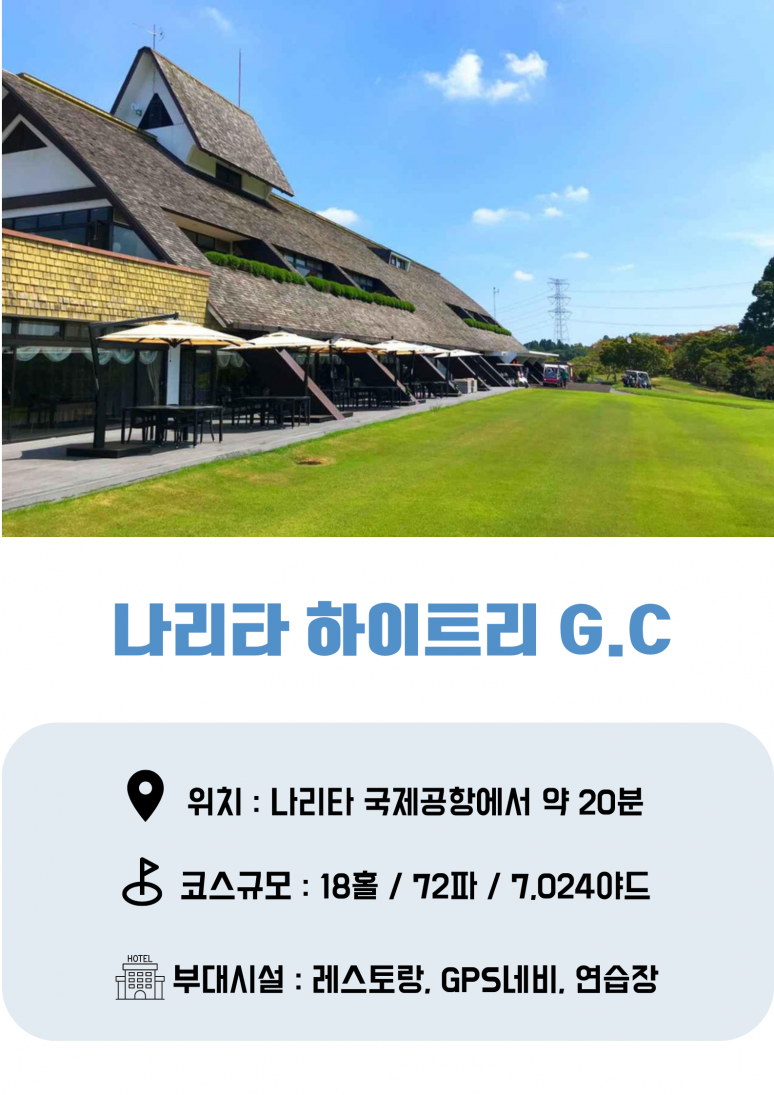 ■ 도착일 18홀 플레이 원하시는 경우에는 나리타공항 10시대 도착, 12시30분 이 전 티오프 필수 입니다.