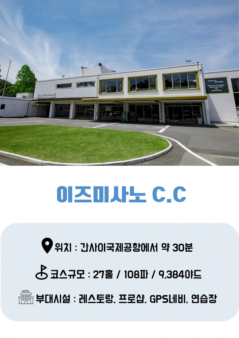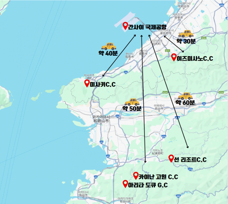 호텔 조식 후 체크아웃 선 리조트, 이즈미사노, 사카이, 미사키, 키시와다 등 1곳 18홀 린쿠 아울렛 자유관광쇼핑 & 자유석식 간사이 국제공항 출발 (청주공항 발 기준) 청주 국제공항 도착 후 해산 |