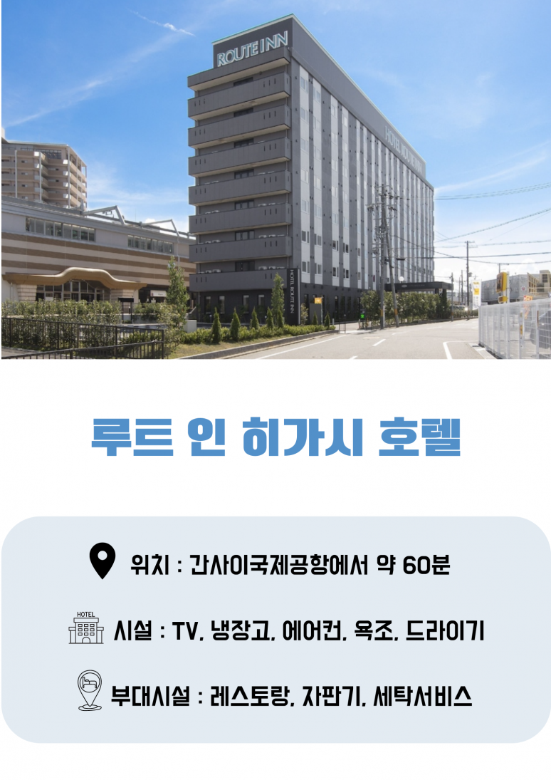 ■ 오사카 루트인 히가시 호텔 또는 동급 호텔