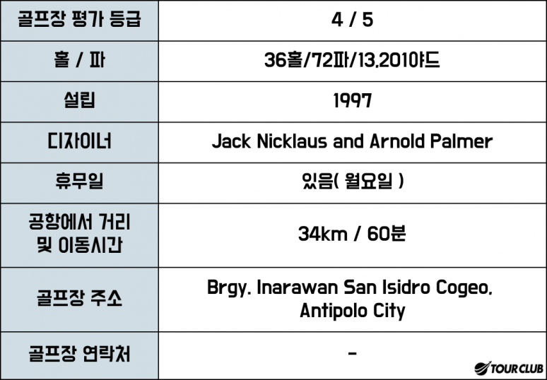 몇 개월이 소요되는 곳입니다. 골프코스의 관리상태도 최상을 보이는데 최근에 새로 잔디를 깔아 PGA대회가 열리는 어느 골프장에게도 비교 될 정도입니다.