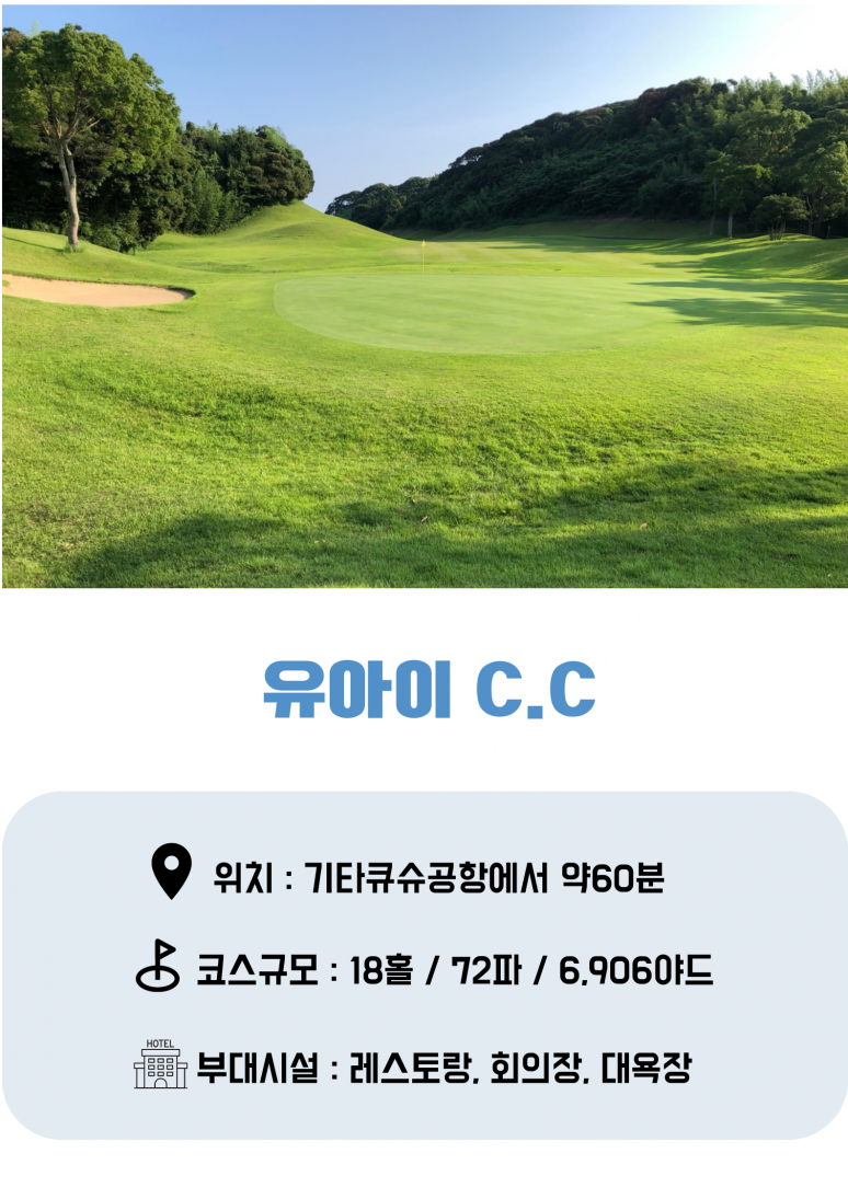 | 호텔 조식 후 골프장으로 이동 (약 10분소요) ▶유아이CC 18홀 라운딩 라운딩 후 호텔로 이동 석식 및 온천욕 |