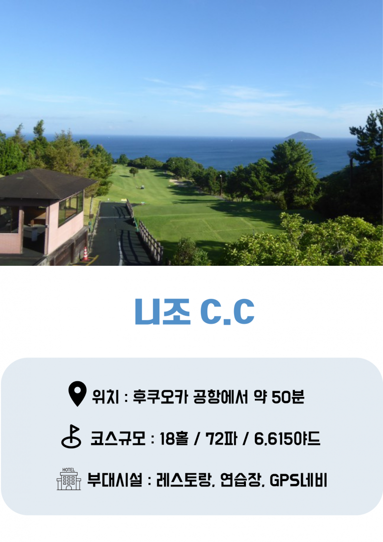 인천 국제 공항 출발 후쿠오카 국제공항 도착 한국인 기사 안내원 미팅 후 골프장으로 이동 하단 골프장 중 1곳 9홀 - 18홀 라운딩 예정 (지정 불가) -니조,사츠키,치쿠시노오카, 치쿠시노, JR우치노, 오고리, 브리지스톤, 사가, 타마나 또는 동급 라운딩 후 호텔로 이동 호텔 체크인 후 자유시간 |