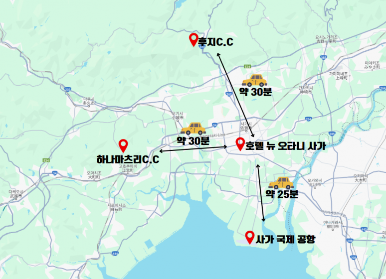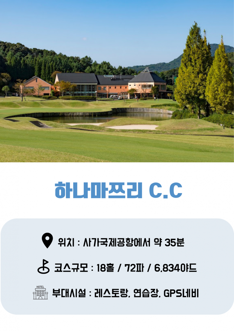 조식 후 골프장으로 이동 ▶하나마츠리 CC 18홀 라운딩 사가 공항으로 이동 (약 40분이동) 사가 국제 공항 출발 인천 국제 공항 도착 |
