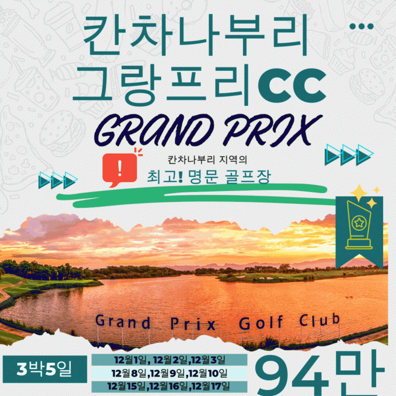 조식 후 골프장 이동 그랑프리 C.C 라운딩 라운딩 후 체크아웃 및 석식 방콕 수완나폼 국제공항 출발 인천/부산 국제공항 도착 |