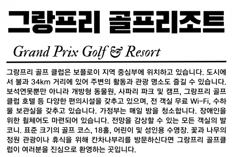 | 숙소정보 : 그랑프리골프클럽 리조트 | ||